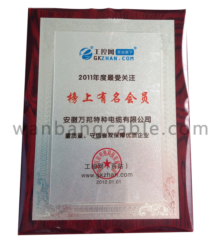 圖片名稱:工控網--榜上有名會員 所屬企業(yè):特種電纜-安徽萬邦特種電纜有限公司專業(yè)特種電纜生產商 更新時間:2013.12.06